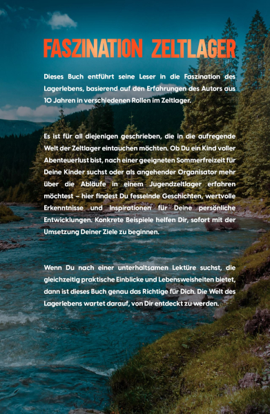 Einzigartige Geschichten und Momente wie diese erwarten Dich in meinem neuen Buch „Faszination Zeltlager – Erfüllung durch Ehrenamt“. Dabei ist dieses Buch nicht nur eine Sammlung mitreißender Erzählungen, sondern eine Reise durch 10 Jahre Zeltlagererfahrung und persönlicher Entwicklung, präsentiert aus verschiedenen Perspektiven auf das Lagerleben.