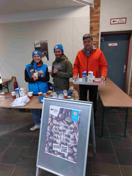 Von etwa 10:30 Uhr bis 15:30 Uhr waren ehrenamtliche der Kolpingjugend und des Diözesanen Facharbeitskreises "Eine Welt" am Freitag aktiv.